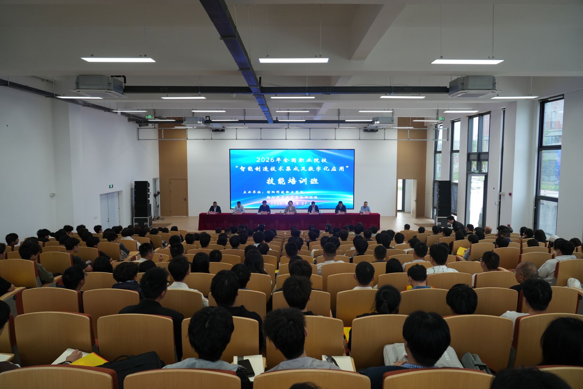 4 月 27 日上午,2026年职业院校“智能制造技术集成及数字化应用”技能培训班开班仪式,在信阳科技职业学院实训楼 5 号楼一楼报告厅隆重举行。本次培训由浙江亚龙教育装备研究院与信阳科技职业学院联合举办,旨在深化职业教育与智能制造融合,提升职教师资专业教学与实践创新能力。