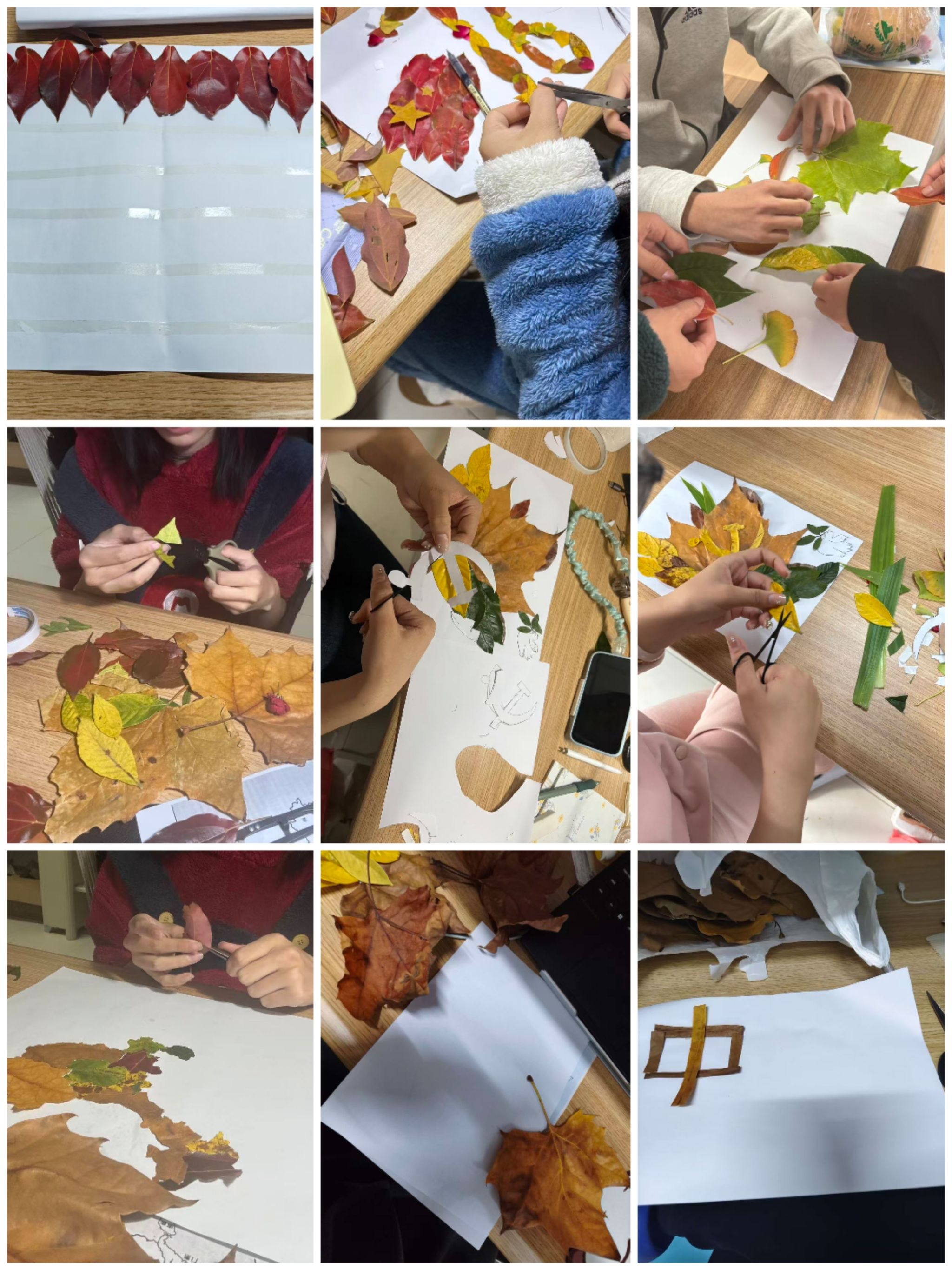 秋日的校园里,银杏的金黄、枫叶的火红、梧桐的棕褐交织成绚丽的画卷。活动伊始,同学们手持工具,自主组建小组,带着任务清单开启寻秋之旅——有的负责捡拾形态各异的落叶,有的专注拍摄秋景瞬间,有的则构思如何将落叶转化为文创作品,各小组分工协作,让捡秋的过程成为一次美的发现和体验。